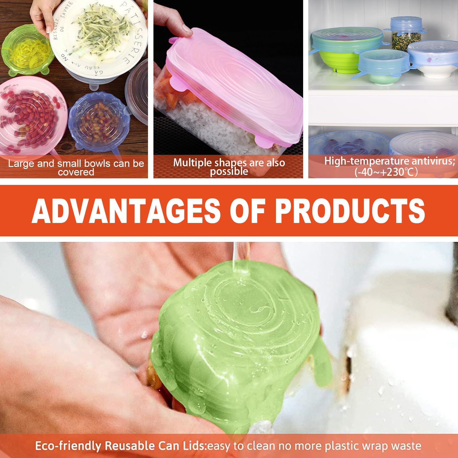 ---Stapelbar: Frischhaltefolie kann nicht gestapelt werden und spart keinen Platz im Kรผhlschrank. ---Wiederverwendbar und einfach zu reinigen: Frischhaltefolie kann nicht wiederverwendet werden, was zu Geldverschwendung und Materialverschwendung fรผhrt. Mehrere Funktionen und Verwendungszwecke: Silikonabdeckungen kรถnnen verwendet werden, um Saft, Getrรคnke und Obst aufzubewahren. Dadurch wird sichergestellt, dass die Lebensmittel frisch bleiben und der Kรผhlschrank keinen Geruch oder Geschmack hat.