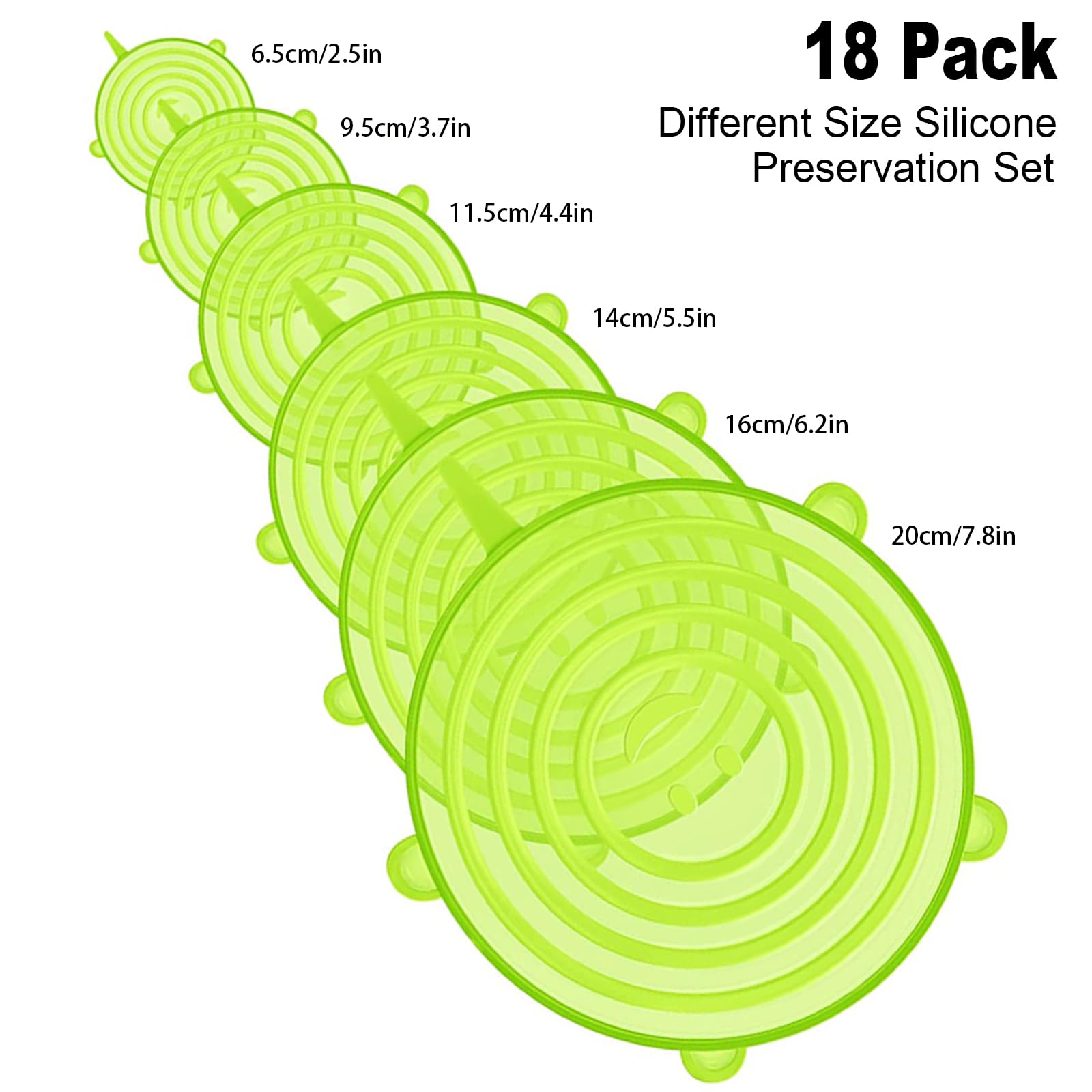 18-Pack Silicone Stretch Lids โ 6 Sizes, Reusable Food Covers