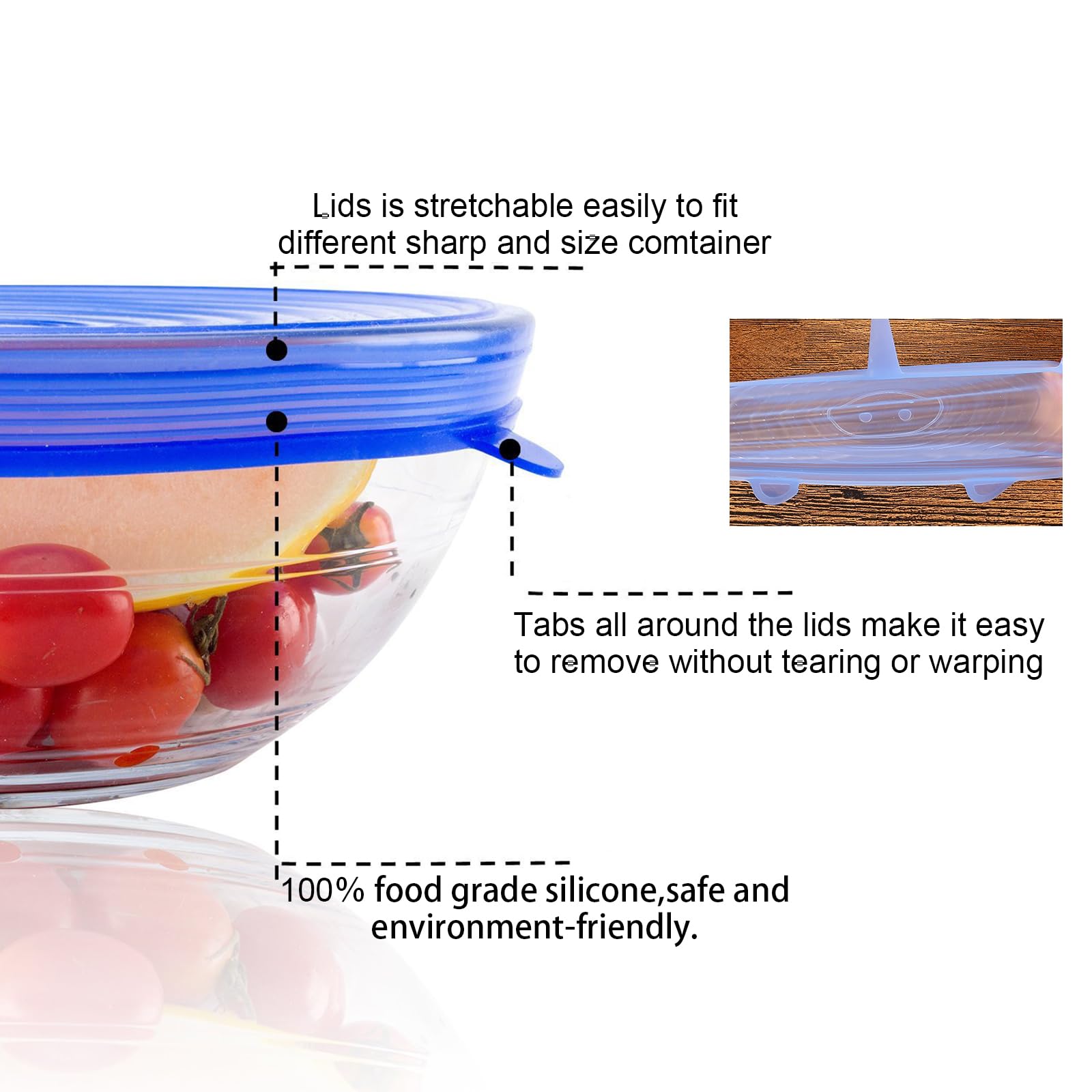 Elastische Flexibilitรคt und Dehnbarkeit: Diese Silikonabdeckungen sind รคuรerst flexibel und elastisch. Sie sind in 6 verschiedenen Grรถรen erhรคltlich (2,7 Zoll, 3,7 Zoll, 4,4 Zoll, 5,4 Zoll, 6,4 Zoll, 7,9 Zoll). Die angezeigte Grรถรe in der Abbildung ist die Grรถรe im natรผrlichen Zustand des Produkts. Jede Grรถรe kann gedehnt werden (ca. 5-10 cm). Die Elastizitรคt ermรถglicht eine doppelte Dehnung. Sie passen auf verschiedene Behรคlter wie Tassen, Glรคser, quadratische und runde Schรผsseln sowie Obst.
