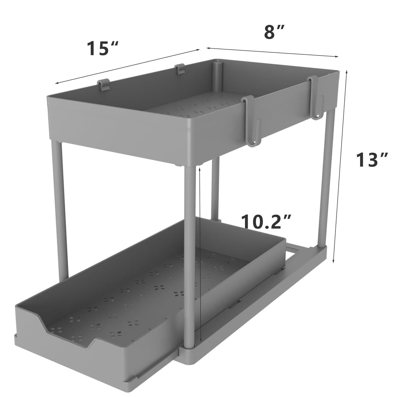 - Large Capacity - Bottom area holds items height up to 10.3 inches. Size: 15"L x 8"W x 13"H.