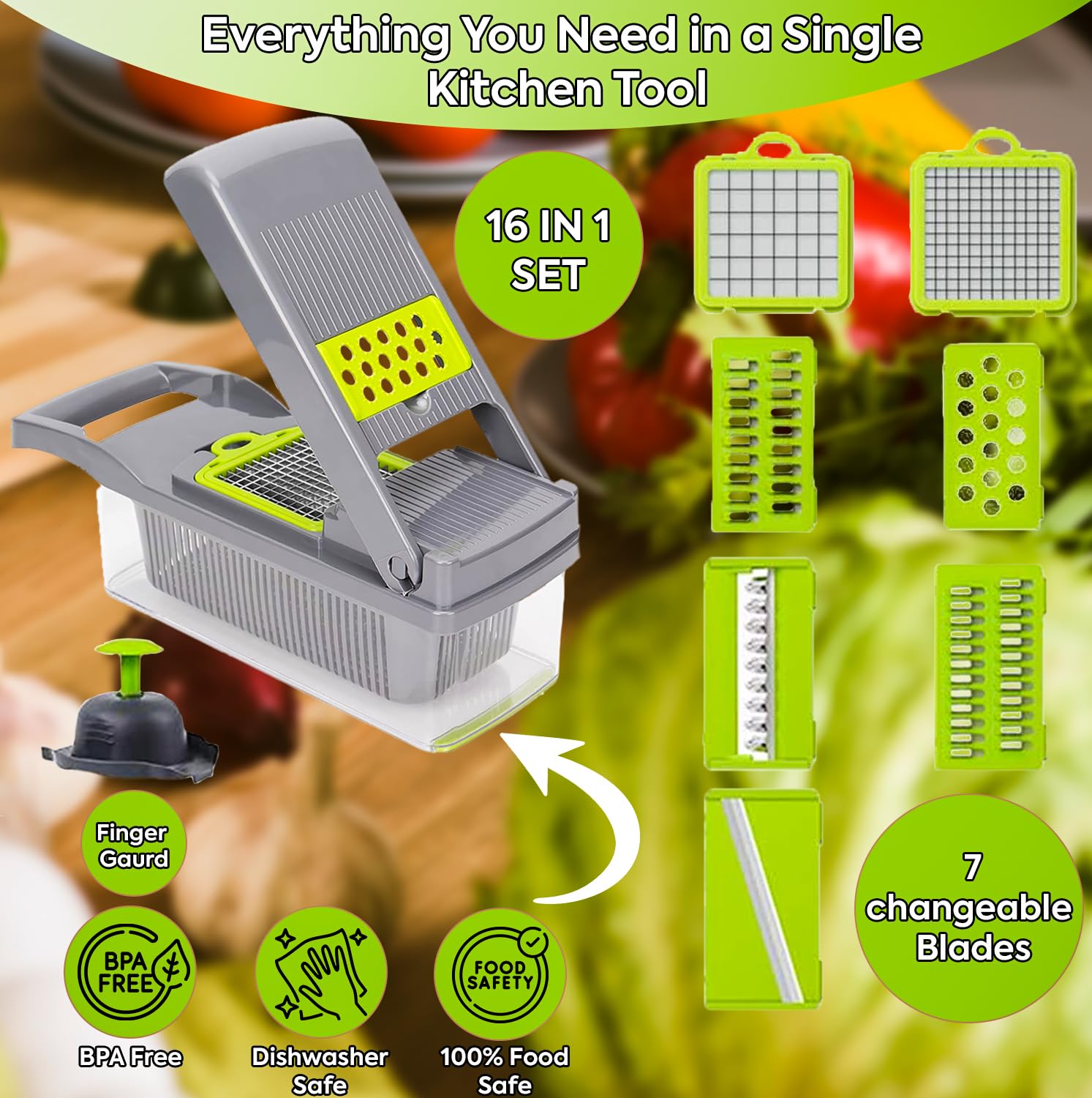 - šš-š¢š§-š šš®š„šš¢-š š®š§ššš¢šØš§šš„š¢šš² :Transform your kitchen experience with 16 versatile tools in one ā chop, dice, slice, julienne, spiralize, grate & more. Save time, effort, and space with this all-in-one solution for every cooking need.