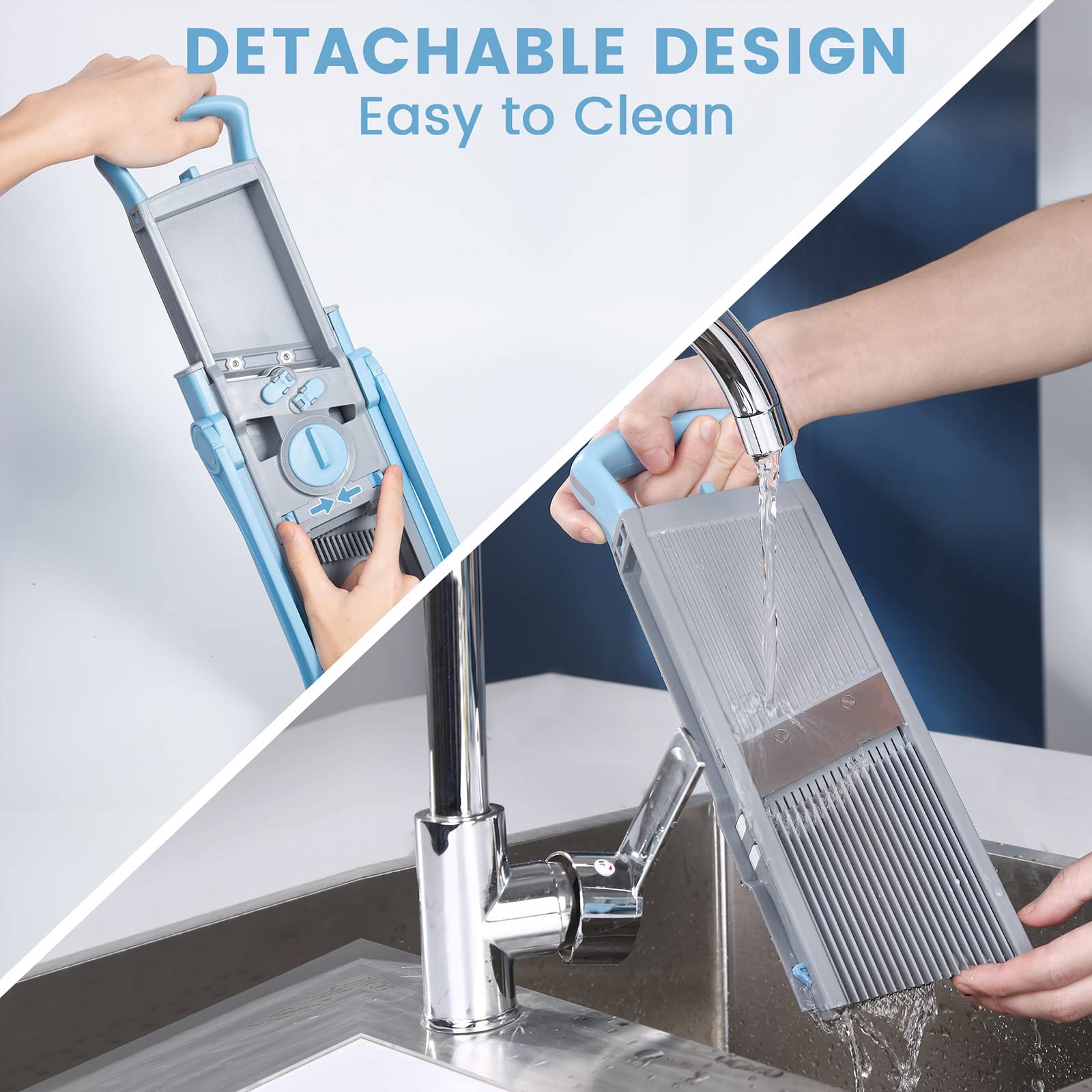 Supmakin Safe Mandoline Slicer – Adjustable 4-in-1 Vegetable Chopper & Dicer (Sky Blue)