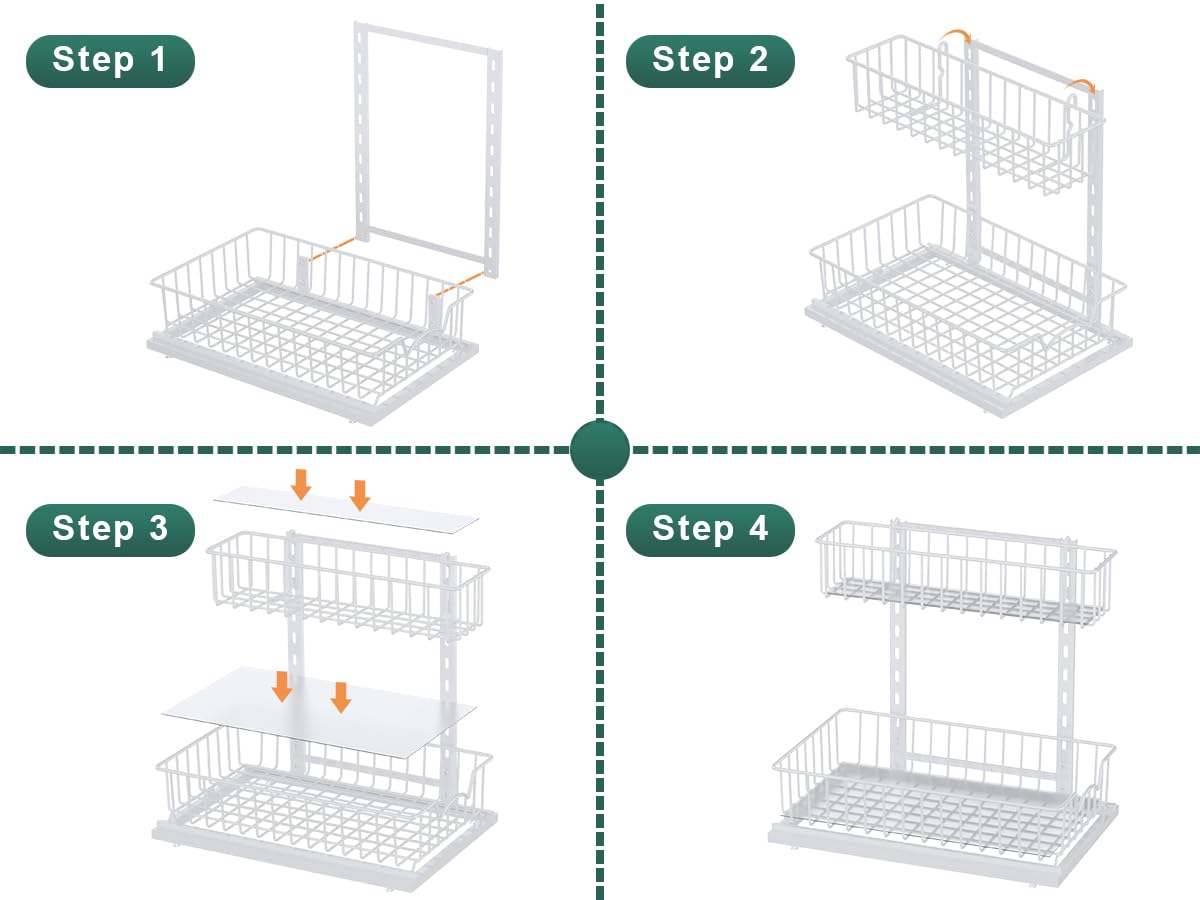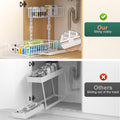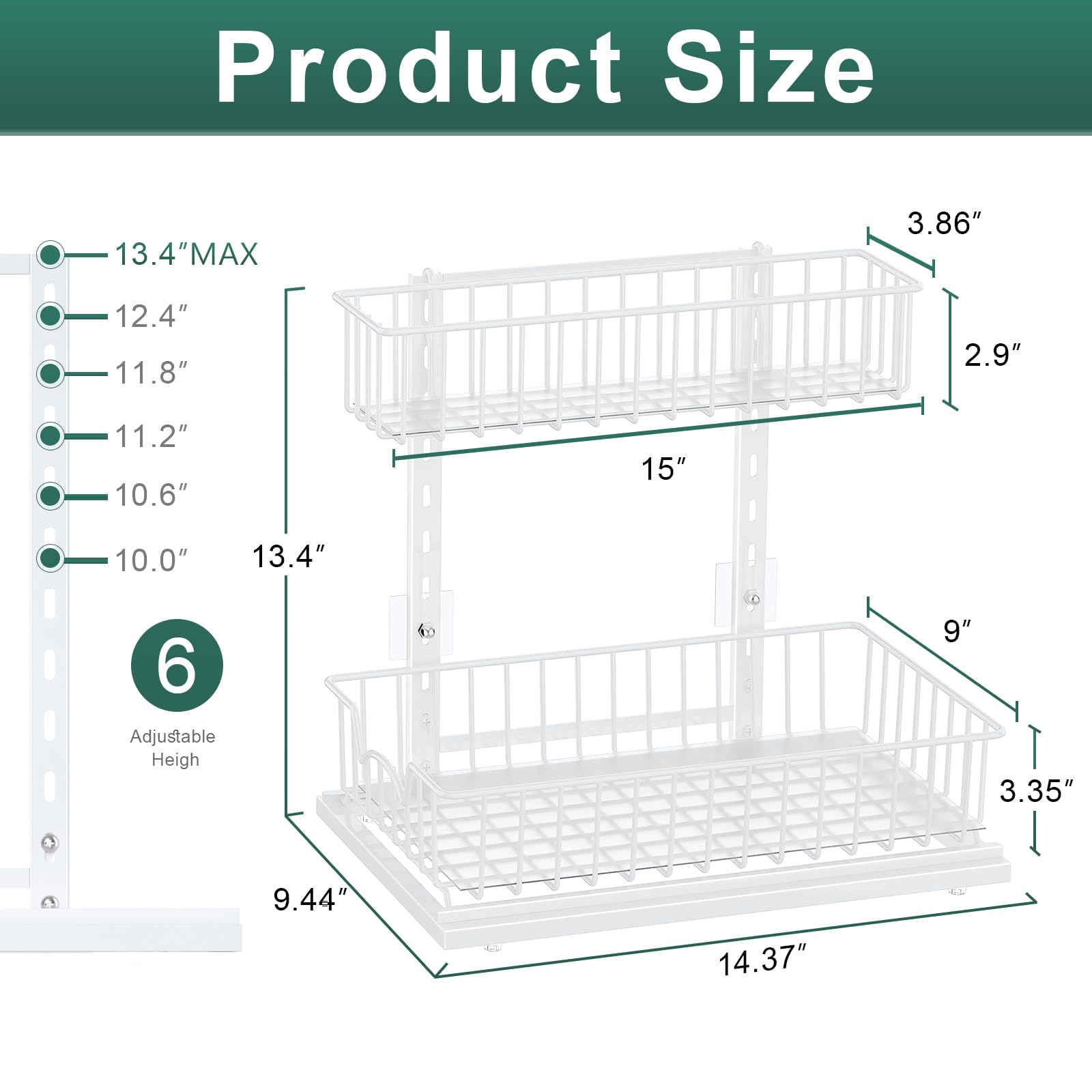 - ✔️ [Use for Years] The undersink organizers is designed with a grid, so you don't have to worry about water accumulation. With baked enamel process, rust and waterproof, it can keep the metal shine even in wet bathroom or greasy kitchen. The bottom non-slip pads and wall hooks hold it firmly in place, so you can quickly push and pull the sliding drawer without worrying about it tipping over.