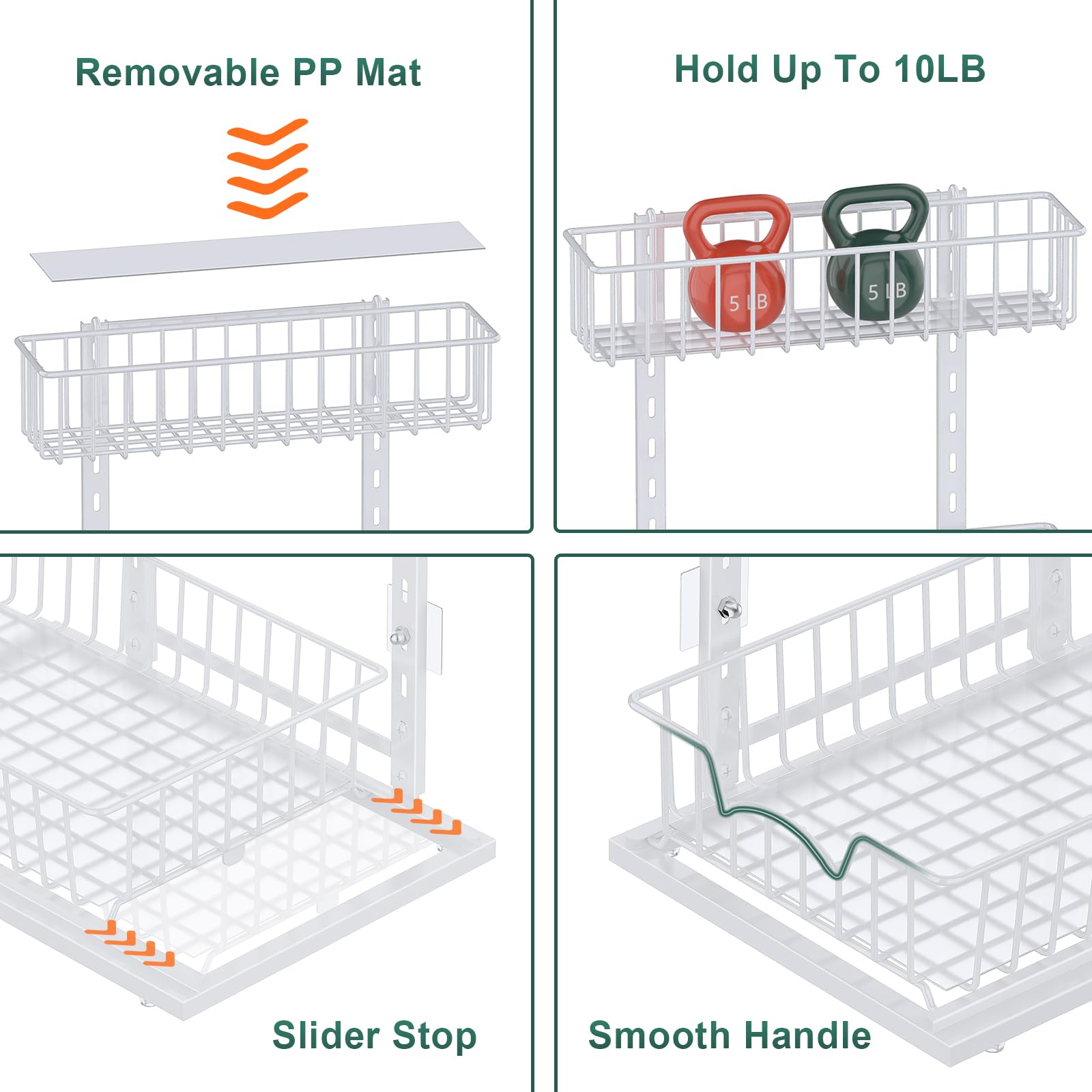 - 🏠 [Sliding Organizer Drawer] The under the sink pull-out cabinet organizer features a sliding bottom that slides in and out easily and smoothly for easy access. It's designed to solve the everyday challenge of accessing items that are usually hard to reach in the back of cabinets, making the most of a small space and allowing you to store a variety of items while keeping them separate and organized.