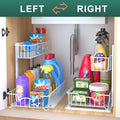 - ☀️ [Multifunctional Organization & Storage] The under sink organizer basket provides two layers of PP rubber mats, which can effectively prevent items from falling. The metal sliding organizer is suitable for under sink storage, kitchen storage spice rack, bathroom storage, under cabinet storage, laundry room storage and home organization.The pull-out organizer provides plenty of storage space for all your cleaning supplies and is a must-have little household helper.