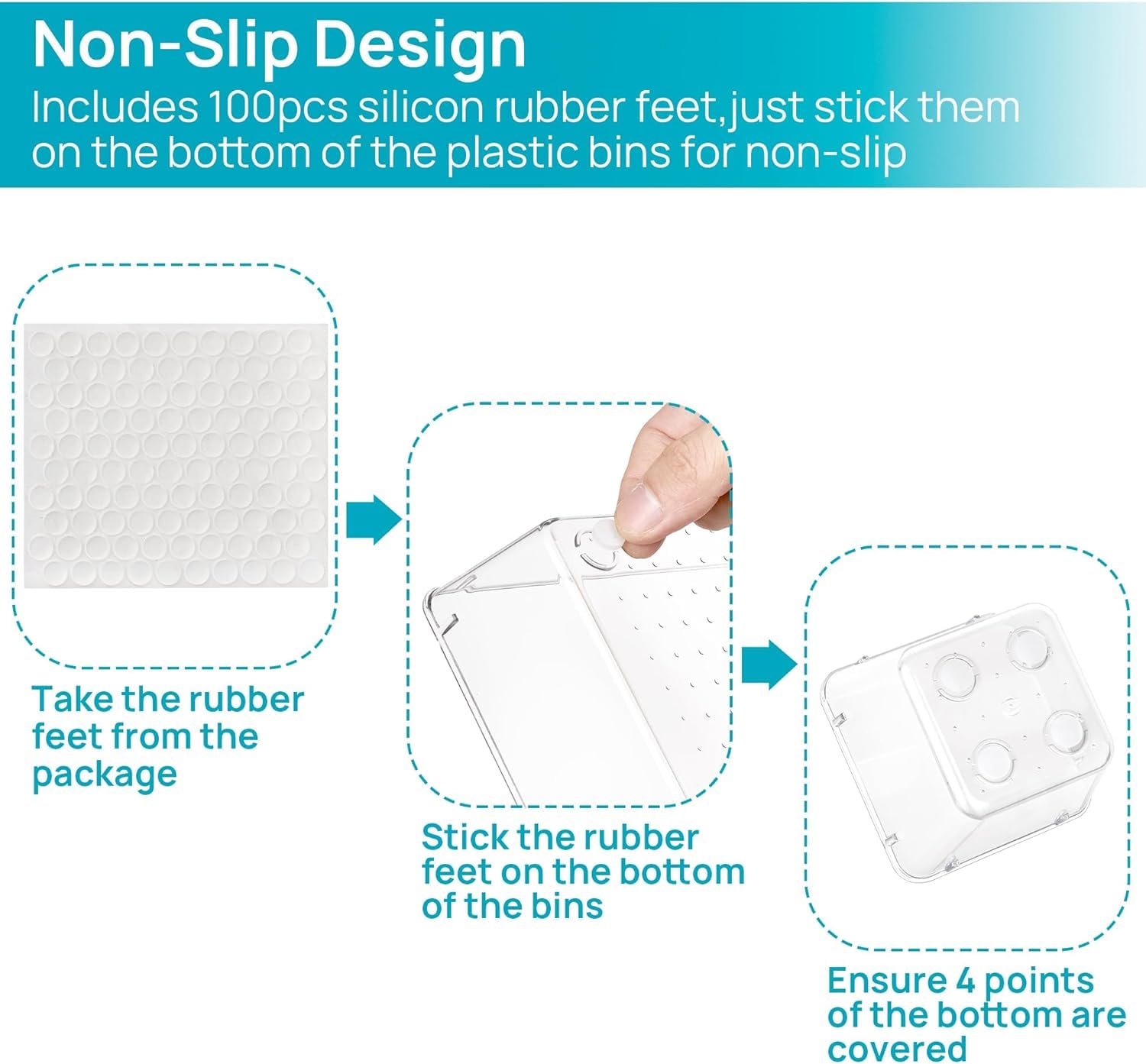 - Non-Slip and Durable -- Extra 100pcs silicone pads are included, just stick them on the bottom of the plastic trays for non-slip. Made of durable and clear plastic, so you can see what’s in it without digging around or making a mess, help you get a neat lifestyle.